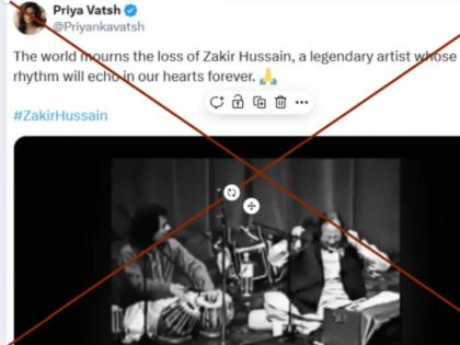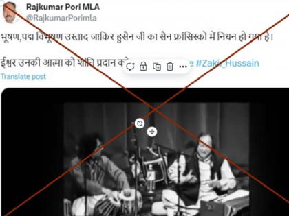 १६ डिसेंबर रोजी सोशल मीडिया प्लॅटफॉर्म एक्सवर एक व्हिडीओ शेअर करताना, एका वापरकर्त्याने लिहिले, भूषण, पद्मविभूषण उस्ताद झाकीर हुसैन जी यांचे सॅन फ्रान्सिस्कोमध्ये निधन झाले आहे. ईश्वर त्यांच्या आत्म्यास शांती देवो. पोस्टची लिंक, संग्रहण लिंक आणि स्क्रीनशॉट येथे पहा.