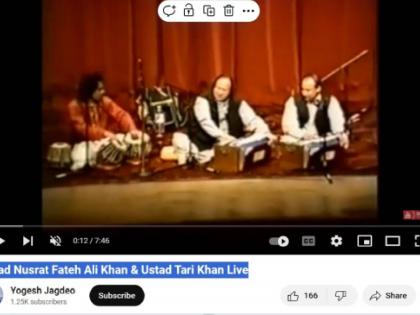 व्हायरल व्हिडिओची 'की-फ्रेम्स' रिव्हर्स शोधल्यावर, आम्हाला तो योगेश जगदेव नावाच्या YouTube चॅनेलवर अपलोड केलेला आढळला. २३ जुलै २०११ रोजी चॅनेलवर अपलोड केलेल्या व्हिडिओच्या वर्णनात असे म्हटले आहे की व्हिडिओमध्ये उस्ताद तारी खान यांच्यासह उस्ताद नुसरत फतेह अली खान आहेत. व्हिडिओची लिंक आणि स्क्रीनशॉट येथे पहा.