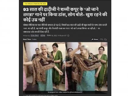 ओ जाने तमन्ना किधर जा रही हो या लोकप्रिय गाण्यावर एका ९३ वर्षीय आजीचा डान्स करतानाचा व्हिडिओ व्हायरल झाला होता.