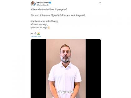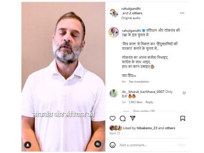 आम्हाला २५ एप्रिल रोजी राहुल गांधींच्या अधिकृत इन्स्टाग्राम अकाउंटवर अपलोड केलेला हा व्हिडीओ देखील आढळला. येथेही त्यांनी काँग्रेस पक्ष आणि इंडिया आघाडीला पाठिंबा देण्याबाबत म्हटलं आहे. या कॅप्शनमध्ये असं लिहिलं आहे की, “संविधान आणि लोकशाहीचे रक्षण करण्यासाठी या निवडणुकीत, मित्र काळातून बाहेर पडून भारतीयांचं सरकार स्थापन करण्यासाठी… लोकशाहीचं आपलं कर्तव्य पार पाडा, काँग्रेससोबत या, हाताचं बटण दाबा. जय हिंद."