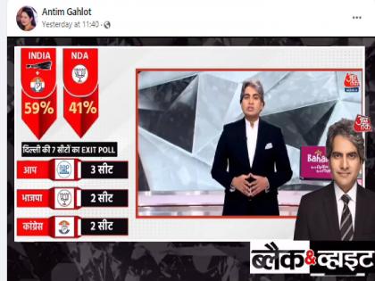 संबंधित कीवर्डच्या मदतीने गुगल सर्च केल्यानंतर, 'आज तक'च्या वेबसाइटवर असा कोणताही अहवाल आम्हाला आढळला नाही यामध्ये इंडिया टुडेने दिल्लीतील एकूण सात जागांपैकी पाच जागा इंडिया अलायन्सला आपल्या एक्झिट पोलमध्ये दिल्या आहेत.