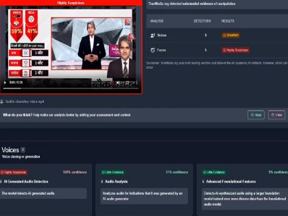 डीपफेक ॲनालिसिस युनिटने AI डिटेक्टर्स TrueMedia आणि HIVE AI च्या मदतीने या व्हिडिओचे परीक्षण केले आणि आढळले की हा ऑडिओ मोठ्या प्रमाणात AI द्वारे तयार झाला आहे. त्यांचे परिणाम खाली पाहिले जाऊ शकतात.