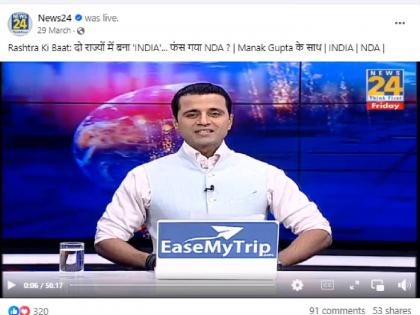 आता आम्ही न्यूज 24 चे अँकर मानक गुप्ता यांच्या वेगवेगळ्या शोचे व्हिडीओ पाहिले. यादरम्यान, आम्हाला न्यूज 24 च्या फेसबुक पेजवरून २९ मार्च रोजी लाईव्ह करण्यात आलेल्या 'राष्ट्र की बात' कार्यक्रमाचा व्हिडीओ मिळाला. या कार्यक्रमात इंडिया आघाडीच्या दोन राज्यात निश्चित झालेल्या जागांवर चर्चा करण्यात आली.