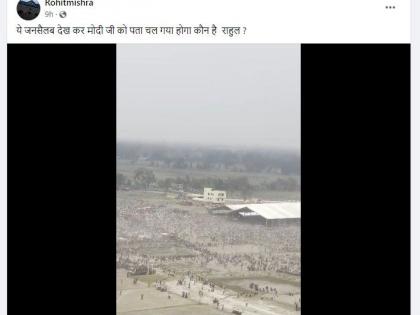 फेसबुक युजर रोहित मिश्रा याने २१ मे २०२४ ला व्हायरल व्हिडिओ शेअर करत त्यावर कॅप्शन लिहिलं होतं, ही गर्दी पाहून मोदीजींना हे समजलं असेल कोण आहे राहुल?