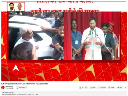 या दाव्याची सत्यता तपासण्यासाठी व्हिडिओमध्ये बोलले जाणारे शब्द वापरून कीवर्ड शोध घेतला. तेव्हा १० ऑगस्ट २०२२ रोजी Aaj Tak च्या वेबसाइटवर प्रकाशित झालेला रिपोर्ट दिसला. या रिपोर्टमध्ये १० ऑगस्ट २०२२ रोजी नितीश कुमार यांच्या पक्ष जेडीयूने भाजपासोबतची युती तोडून लालू यादव यांच्या पक्ष आरजेडीसोबत नवे सरकार स्थापन केले असल्याचे सांगण्यात आले. या सरकारमध्ये नितीशकुमार यांना मुख्यमंत्री आणि तेजस्वी यादव यांना उपमुख्यमंत्री करण्यात आले.
