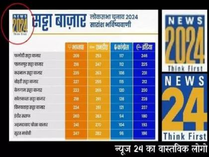 देशभरात लोकसभा निवडणुका सुरू आहेत, लोकसभा निवडणुकीतील शेवटच्या टप्प्यातील मतदान १ जून रोजी होत असून ४ जून रोजी लोकसभेचे निकाल समोर येणार आहेत. या पार्श्वभूमीवर अनेकांनी निकालाचे दावे करण्यास सुरुवात केली आहे. देशातील सट्टा बाजारांनीही विजयाचे आकडे सांगितले आहेत. दरम्यान, सोशल कालपासून मीडियावर 'न्यूज24' या चॅनेलचे एक ग्राफीक्स व्हायरल झाले आहे. यात इंडिया आघाडी आघाडी घेईल असं सांगितलं आहे.
