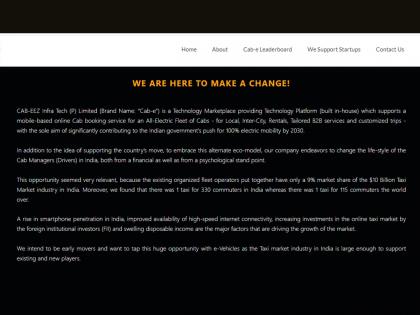 व्हॉट्सअॅपवर ज्या Cab E नावानं मेसेज व्हायरल झाला आहे. त्याच कंपनीचं अधिकृत संकेतस्थळ https://www.cabecars.in/ उपलब्ध आहे. या संकेतस्थळावर कंपनीची संपूर्ण माहिती about सेक्शनमध्ये देण्यात आली आहे. यातील माहितीनुसार CAB-EEZ Infra Tech (P) Limited (Brand Name: “Cab-e”) ही स्वतंत्र कंपनी असून या कंपनीचा Tata या कंपनीशी कोणताही संबंध असल्याचं येथे नमूद करण्यात आलेलं नाही.