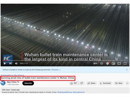 याचाच आधार घेत यूट्यूबवर Bullet Trains in Whan असं सर्च केलं असता New China TV नावाच्या अकाऊंटवर दोन व्हिडिओ आढळून आले. Stunning aerial view of high-speed train maintenance center in Wuhan या मथळ्यानं अपलोड करण्यात आलेला व्हिडिओ पाहिला असता व्हायरल फोटोत दावा करण्यात आलेली जागा वुहानमधीलच असल्याचं दिसून येतं.