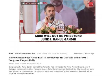 टाइम्स ऑफ इंडियाने 10 मे 2024 रोजी राहुल गांधींच्या या रॅलीचं वृत्त दिलं होतं. ‘Rahul Gandhi Says ‘Good Bye’ To Modi; Says He Can’t Be India’s PM I Congress Kanpur Rally’ असं या रिपोर्टमध्ये म्हटलं आहे. रिपोर्टसोबत राहुल गांधी यांच्या भाषणाची क्लिपसुद्धा शेयर करण्यात आली आहे. ज्यामुळे हे स्पष्ट होतं की व्हायरल व्हिडीओ एडिटेड आहे.