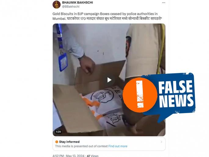 आमच्या तपासात अशाप्रकारे भाजपाच्या किटमध्ये मुंबईत सोन्याची बिस्किटं सापडली हा दावा खोटा आहे. हे स्पष्ट झालं आहे. मुंबईच्या घाटकोपर भागात संशयावरून तपासणी करण्यात आलेल्या भाजपाच्या किटमध्ये प्रचाराचं साहित्य आणि परफ्यूमच्या प्लास्टिक बॉटल होत्या हे तपासात उघड झालं आहे.