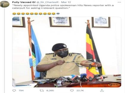 व्हायरल झालेला पोलीस अधिकारी युगांडाचा आहे. त्यावरून केनियातील प्रसिद्ध वकील अहमदनासीर अब्दुल्लाही यांनी युगांडा पोलिसांची खिल्ली उडवली. 'आमचे शेजारी', असं म्हणत त्यांनी युगांडा पोलिसांना टोला लगावला. त्यानंतर युगांडा पोलिसांनी अब्दुल्लाही यांच्या ट्विटला उत्तर दिलं. व्हायरल ट्विटमधील दावा खोटा असल्याचं युगांडा पोलिसांनी त्यांच्या अधिकृत ट्विटर हँडलवरून सांगितलं. त्यानंतर अब्दुल्लाही यांनी ट्विट डिलीट केलं.