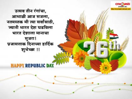 २६ जानेवारी रोजी संपूर्ण भारतात ‘प्रजासत्ताक दिन’ मोठ्या उत्साहात साजरा केला जातो. यादिवशी लहानांपासून मोठ्यांपर्यंत प्रत्येकजण एकमेकांना शुभेच्छा देत आनंद व्यक्त करतात. त्यातच सध्या आज प्रत्येकाकडे स्मार्टफोन असल्याने सोशल मीडियाच्या माध्यमातून आपल्या मित्र-मैत्रिणींना, नातेवाईकांना आपण फोन किंवा एसएमएस किंवा वॉटस अॅपच्याव्दारे शुभेच्छा देतो. असेच काही स्पेशल मेसेज आम्ही घेऊन आलो आहोत तुमच्यासाठी.