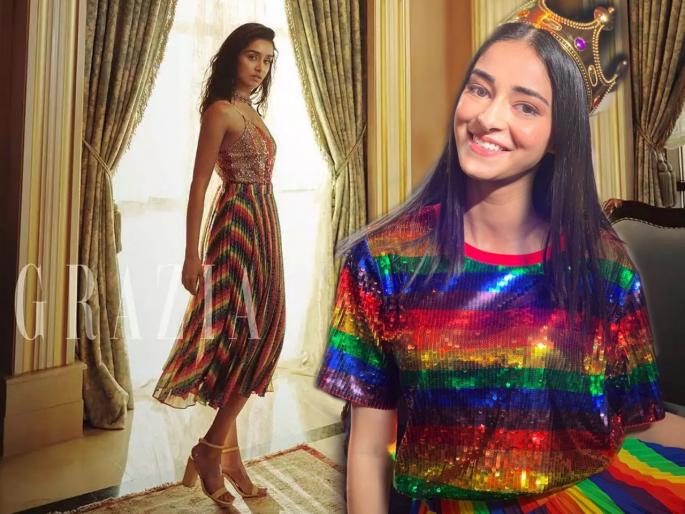 दुसरीकडे अनन्या पांडने हाच स्कर्ट आपल्या पहिला वहिला चित्रपट 'स्टूडंट ऑफ द इयर 2' च्या प्रमोशन दरम्यान वेअर केला होता. तसेच तिने या स्कर्टसोबत रेनबो कलरचे हेव्ही सीकुन्ड टॉप वेअर केला होता. तिने या आउटफिटवर कोणतीही एक्ससरीज कॅरी केल्या नव्हत्या. त्याचबरोबर व्हाइट स्नीकर्स वेअर केले होते. अनन्याने हलका मेकअप केला होता, तिचे पिंक लिप्स लक्ष वेधून घेत होते.