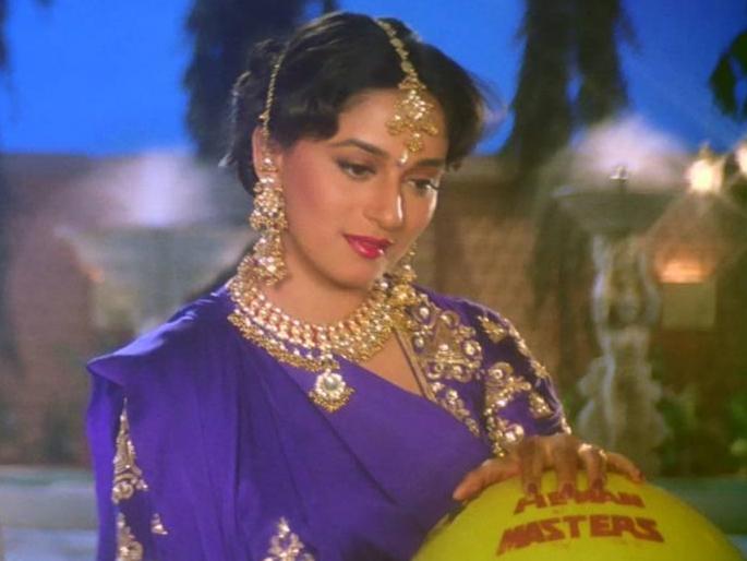 जिथे 'धक धक'मध्ये माधुरीला साडीमुळे सेक्सी लूक मिळाला तिथेच 'हम आपके है कौन' या चित्रपटामध्ये माधुरी निळ्या साडीमध्ये ट्रेडिशनल लूकमध्ये दिसून आली होती. सुंदर बॉर्डर, स्लीव्ड ब्लाउज आणि बांगड्यांसोबत माधुरीची ही साडी लग्न समारंभांमध्ये महिलांची पहिली आवड असते.