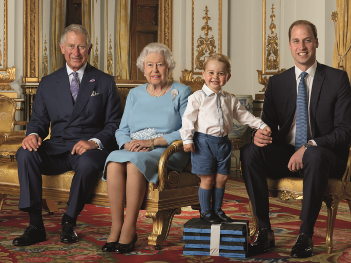 इंग्लंडच्या रॉयल मेलने ब्रिटिश राजघराण्यातील चार पिढ्या एकत्र असलेला एका फोटोग्राफ प्रकाशित केला आहे. इंग्लंडची महाराणी एलिझाबेथ द्वितीय यांच्या 90 व्या वाढदिवसानिमित्त रॉयल मेलने एक स्पेशल स्टॅम्प तयार केला असून त्यात महाराणी सोबत त्यांचा पणतू प्रिन्स जॉर्जदेखील आहे.बकिंगहॅम पॅलेसच्या व्हाईट ड्रॉविंग रूममध्ये घेण्यात आलेल्या एका फोटोमध्ये राजघराण्याचे तीन वंशज - प्रिन्स चार्ल्स, प्रिन्स विल्यम आणि प्रिन्स जॉर्ज - महाराणी एलिझाबेथ द्वितीय यांच्यासोबत दिसतात. राणीच्या नव्वदव्या वाढदिवसानिमित्त विंडसर फॅमिलीचा फोटो असलेले विशेष दहा स्टॅम्पस प्रकाशित करण्यात आले आहेत.फोटोमध्ये सर्वांचे लक्ष वेधून घेतो तो छोटासा प्रिन्स जॉर्ज. येत्या जुलै महिन्यात तो तीन वर्षांचा होणार आहे. पणजी आणि वडिलांचे मध्ये एका ब्लॉकवर उभा असलेल्या प्रिन्सचे निरागस हास्य मोहून टाकणारे आहे.या दहापैकी सहा स्टॅम्पद्वारे महाराणीचे जीवनकार्य दर्शविण्यात आलेले आहे. त्यामध्ये गोल्डन जुबलीनिमित्त 1977 ला न्यूझीलंडला दिलेली भेट, 1996 साली नेल्सन मंडेला सोबतचा फोटो असे अनेक प्रसंग दाखविण्यात आले आहेत. प्रिंन्स फिलिप यांच्या पाचव्या जन्मशताब्दीनिमित्त महाराणी विंडसर कॅसल जवळ असणाºया रॉयल मेल आॅफिसला भेटदेखील देणार आहे.