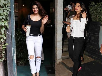 जर तुम्ही काय वेअर करायचं या विचारात असाल तर ब्लॅक जीन्सवर व्हाइट टी-शर्ट किंवा व्हाइट जीन्सवर ब्लॅक टी-शर्ट वेअर करू शकता. जॅकलीन फर्नांडिसचे हे फोटो तुमच्यासाठी बेस्ट उदाहरण आहेत.