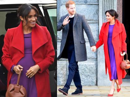 पति प्रिंस हॅरीसोबत बर्केहेड मध्ये दिलेल्या भेटीदरम्यान मेगन पर्पल कलरच्या अर्टिजिया ड्रेसमध्ये दिसून आली. त्यावर मेगनने ब्राइट रेड कलरचा अत्यंत सुंदर ओवरकोट परिधान केला असून त्यासोबतच ब्राइट रेड कलरच्या ओवरकोटला मॅच करणाऱ्या पॉइंटेड हिल्स वेअर केल्या होत्या. पण सर्वांचं लक्ष वेधून घेतलं ते म्हणजे, मेगनच्या छोट्या ब्राउन कलरच्या बॅगने. मेगनची ही bowling बॅग गॅब्रिएला हर्ट्स्टची लेदर बॅग होती. या बॅगची किंमत 1 हजार 695 पाउंड म्हणजेच जवळपास दीड लाख रूपये होती.