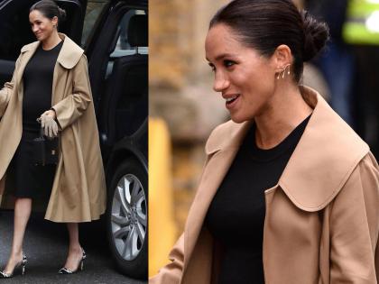जेव्हा मेगन मार्केलच्या प्रेग्नेंसीबाबत सांगायचे तर, मेगन नेहमीच ड्रेसवर ओवरकोट परिधान करताना दिसून येते. यावेळीही मेगन ब्लॅक कलरच्या midi ड्रेससोबत लाइट ब्राउन कलरच्या ऑस्कर डे ला रेंटा स्विंग कोटमध्ये दिसून आली होती. मेगनच्या या ब्लॅक midi ड्रेसची किंमत 218 डॉलर म्हणजेच जवळपास 15 हजार 500 रुपये होती.