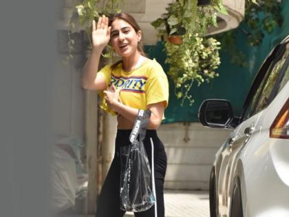 काहि दिवसांपूर्वी सारा जिम आउटफिट्मध्ये दिसून आली. त्यावेळी तिने येल्लो कलरचा क्रॉप टॉप आणि ब्लॅक कलरच्या वर्कआउट लेगिंग्समध्ये दिसून आली. त्यासोबत तिने मिकी माउसची ट्रान्सपरंट बॅग आणि ब्लॅक कलरच्या स्नीकर्ससोबत टिमअप करून वेअर केलं होतं.