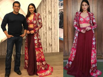 साराचा केदारनाथ हा चित्रपट रिलिज झाला असून प्रेक्षकांचा चांगला प्रतिसाद मिळताना दिसत आहे. सध्या सारा आपल्या चित्रपटाच्या प्रमोशनमध्ये बिझी आहे. टीव्हीवरील जवळपास सर्वच चॅनल्सवरील रियॅलिटी शोमध्ये सारा दिसून येत आहे. मागील काही दिवसांत आपल्या चित्रपटाच्या प्रमोशनसाठी सारा सलमान खान होस्ट करत असलेल्या बिग बॉसमध्ये दिसून आली होती. यावेळी सारा नचिकेत बर्वेने डिझाईन केलेल्या मरून कलरच्या ड्रेसमध्ये दिसून आली. साराने मरून कलरचा लॉन्ग स्कर्टला पिंक कलरच्या फ्लोरल एम्ब्रॉयडरी असणारा क्रॉप टॉप आणि मॅचिंग लॉन्ग जॅकेटसोबत वेअर केलं होतं. साराचा हा लूक संगीत फंक्शनसाठी एकदम परफेक्ट आहे.