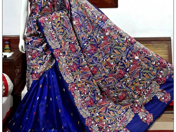 संपूर्ण भारतभर लोकप्रिय असलेली कांथा साडी टी वस्त्रावर केलेल्या भरतकामाचा प्रकार आहे. रंगीबिरंगी धागेदोरे द्वारा साधा धावदोरा माध्यमातून साडीला किती सुंदर सुरेख उठाव येवू शकतो हे या कांथा साड्या बघून पटत. कॉटन, अस्सल सिल्क (रेशमी), अलिकडे सिंथेटिक ही कांथा साड्यामध्ये लोकप्रिय आहे. लोककथामधले प्रसंग, राधा-कृष्ण, मीरा, पशु-पक्षी, फुलं-पानं, नक्षीदार वेली, मानवी आकृतीचं भरतकाम कांथावर्कद्वारे वस्त्रावर करून त्यालाच कांथासाडी म्हटलं जातं. पश्चिम बंगालमधील ग्रामीण स्त्रियांना या कांथा साडीच्या लोकप्रियतेमुळे चांगला रोजगार उपलब्ध होऊ लागला आहे. ही अतिशय महत्त्वाची बाब आहे.