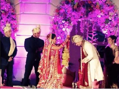 अभिनेता रामचरण याने नववधू अर्पितासह क्लिक केलेला सेल्फी. टेनिसपटू सानिया मिर्झानेही या लग्नास उपस्थिती लावत सलमानसह फोटो क्लिक केला. ...