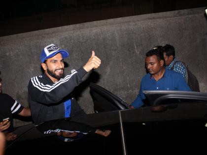 अ िनेता रणवीर सिंग संजय लीला भन्साली यांच्या घराबाहेर आला असताना घेतलेले छायाचित्र.