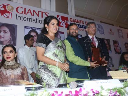 ४ व्या जायंट्स इंटरनॅशनल अॅवॉर्डस् समारंभात केंद्रीय मनुष्यबळ विकास मंत्री प्रकाश जावडेकर यांच्या हस्ते लोकमत एडिटोरियल बोर्डाचे चेअरमन, माजी राज्यसभा सदस्य विजय दर्डा, अभिनेत्री दीपिका पादुकोण, अभिनेता ऋषी कपूर, डॉ. गुरमीत राम रहीम सिंघजी इन्सान, डॉ. संजय देसाई, राणा कपूर, निरंजन हिरानंदानी यांना गौरविण्यात आले. यावेळी शायना एन. सी., नाना चुडासामा हे उपस्थित होते.