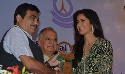 स्मिता पाटील अॅवॉर्ड : नितीन गडकरींच्या हस्ते परस्कार स्वीकारताना कॅटरिना कैफ