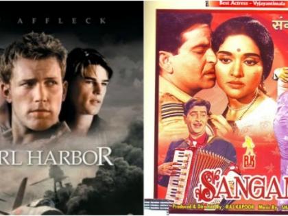 संगम (1964) - पर्ल हार्बर (2001)1964 साली प्रदर्शित झालेला राज कपूर, राजेंद्र कुमार व वैजंयती माला यांचा सुपरहिट सिनेमा ‘संगम’ बॉलिवूडमधील ‘रोमॅटिक लव्ह ट्रंगल’ मानला जातो. युद्ध, प्रेम व मैत्री यावर आधारित ‘संगम’ उत्कृष्ठ चित्रपट आहे. संगमचा 2001 साली हॉलिवूडमध्ये पर्ल हार्बर नावाने रिमेक करण्यात आला. दुस-या महायुद्धाच्या धरतीवर तयार करण्यात आलेला हा सिनेमाने आॅस्कर अर्वाडही मिळविले.