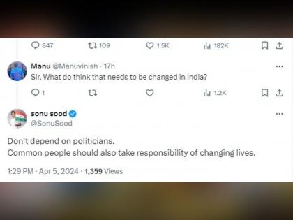 शुक्रवारी सूनने X वर #AskSonu हे सेशन चालवले. हे सेशन सुरु करताच त्याच्या चाहत्यांनी लगेच प्रश्नांचा वर्षाव सुरू केला. यादरम्यान मनू नावाच्या एक्स वापरकर्त्याने सोनू सूदला विचारले, “सर, तुम्हाला काय वाटते, कोणत्या गोष्टी भारताला बदलू शकतात.” युजरच्या या प्रश्नाला सोनू सूदने उत्तर दिले की, “राजकारणींवर विश्वास ठेवू नका. सामान्य लोकांनीही जीवन बदलण्याची जबाबदारी स्वीकारली पाहिजे.” सोनूने दिलेलं हे उत्तर चर्चेत आहे.