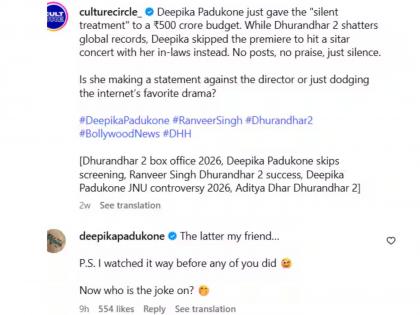 झालं असं की, सोशल मीडियावर एक रिल व्हायरल झाली. या रिलच्या कॅप्शनमध्ये लिहिलं गेलं की, ''दीपिका पादुकोणने हल्लीच ५०० कोटींचं बजेट असलेल्या धुरंधर २ साठी सायलेंट ट्रीटमेंट केली आहे. धुरंधर २ ने जागतिक बॉक्स ऑफिसवरही रेकॉर्डब्रेक कमाई केली आहे. त्यावेळी दीपिकाने आपल्या सासरच्या मंडळींसोबत एका सितार कॉन्सर्टमध्ये सहभाग घेतला. कोणतीही पोस्ट नाही, काही कौतुक नाही, फक्त मौन. दीपिकाला दिग्दर्शकाविरोधात काही बोलायचं आहे का? इंटरनेटवरील गोष्टींपासून ती स्वतःचा बचाव करतेय का?''