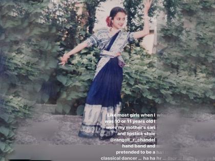 फोटो पोस्ट करताना अभिनेत्रीने लिहिले की, ' मी 10 किंवा 11 वर्षांची असताना माझ्या आईची साडी नेसली होती आणि लिपस्टिक लावली होती. बहीण रांगोलीचा बँड चोरुन घातला होता आणि शास्त्रीय डान्सरसारखा अभिनय केला.. हा हा.' बालपणीच्या या फोटोमध्ये कंगना खूपच क्यूट दिसत आहे.