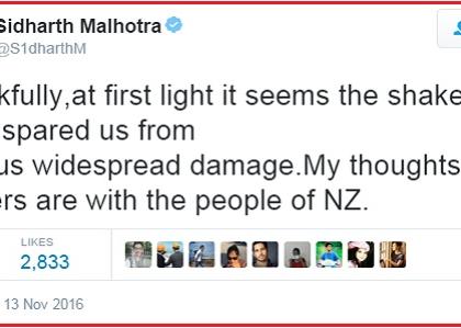 ट्विट करून त्याने लोकांसाठी प्रार्थना केली, ‘सुदैवाने भूकंपामुळे जास्त नुकसान झाले नाही . सर्व न्यूझीलंडवासीयांच्या सुरक्षेसाठी मी प्रार्थना करतो. क्राईस्टचर्च शहरात आता परिस्थिती पूर्ववत होऊ लागली आहे, हे ऐकून खूप बरे वाटले. सर्व काही लवकर ठीक होईल अशी मी कामना करतो.’