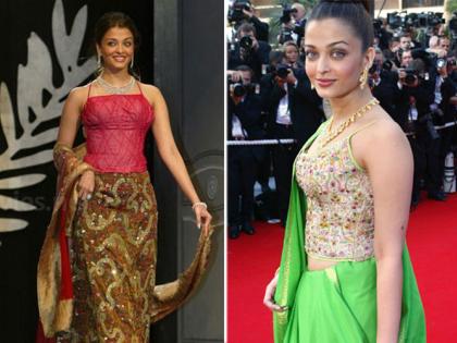 २००२ मध्ये ऐश्वर्याने पहिल्यांदा कान्सच्या रेड कार्पेटवर आपला जलवा दाखवला. त्यावर्षी नीता लुल्लाने डिझाईन केलेली पिवळी साडी आणि त्यासोबत हेवी ज्वेलरी घालून ती रेड कार्पेटवर उतरली होती.