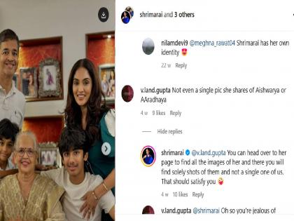 शिवाय तिची महिन्याभरापूर्वीचीही एक पोस्ट आहे ज्यामध्ये तिने प्रियंका चोप्रासोबत फोटो शेअर केला आहे. यातही एका युझरने कमेंट करत लिहिले, 'तू कधीच ऐश्वर्यासोबत का दिसत नाही. ना ऐश्वर्याचं कुटुंब आणि ना बच्चन कुटुंब तिला सामावून घेतं. असं का? यावर श्रीमाने क्रिप्टिक कमेंट करत लिहिले, 'तुम्हीच विचार करा'.