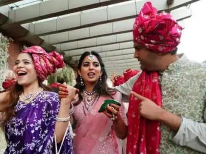 गतवर्षी लग्नाच्या बंधनात अडकलेली ईशा ही सुद्धा भाऊ व वहिनीला आशीर्वाद देण्यासाठी पोहोचली.