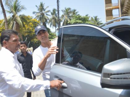 अ ्षय कुमार नुकताच एका थिएटरच्याबाहेर दिसला. यावेळी त्याच्यासोबत पत्नी ट्विंकल आणि मुलगी नितारा ही अक्षयच्या खांद्यावर दिसली.