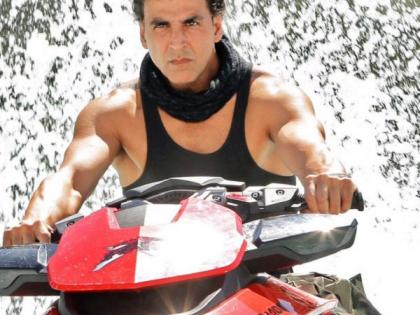 वरूण धवन व जॉन अब्राहमच्या आगामी‘ढिशूम’ या चित्रपटात अक्षय लहानशी भूमिका करतो आहे. पण सिनेमातील त्याचा लूक कमालीचा आकर्षक आहे. केसाचा बुचडा बांधलेल्या अंदाजात समुद्रात जेट स्कीवर स्वार असलेला अक्षय यात दिसणार आहे.