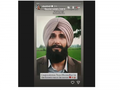 आलिया भटने आपल्या इंस्टाग्राम स्टोरीवर 'धुरंधर २' बद्दल एक खास पोस्ट शेअर केली आहे. यामध्ये तिने चित्रपटातील एका विशिष्ट पात्राचा आणि प्रसंगाचा उल्लेख केला. आलिया म्हणाली, "'जसकीरत सिंग रंगी' हा क्षणच सर्वकाही आहे! जेव्हा एखादा अभिनेता आणि दिग्दर्शक यांच्यात परिपूर्ण ताळमेळ असतो, तेव्हा जी जादू घडते, ती या क्षणात अचूकपणे टिपली गेली आहे". आलियाने या ऐतिहासिक यशाबद्दल संपूर्ण 'धुरंधर' टीमचे अभिनंदन केले.