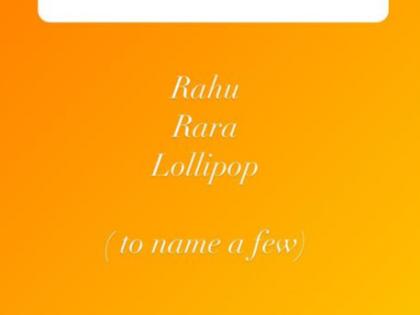 आलिया भटने इन्स्टाग्रामवर ‘आस्क मी सेशन’ ठेवले होते. यावेळी तिने चाहत्यांच्या अनेक प्रश्नांची उत्तरे दिली. यावेळी एका चाहत्याने राहाचे टोपणं नावं काय आहे असे विचारले की, यावर उत्तरात आलिया म्हणाली, 'राहू, रारा आणि लॉलीपॉप'. रणबीर कपूर आणि आलिया भट्ट आपल्या मुलीला या तीन नावांनी हाक मारतात.