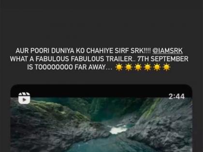 बॉलीवूड सेलिब्रिटी जवानच्या पॉवरपॅक ट्रेलरचे कौतुक करताना थकत नसल्याचे दिसून येत आहे. आलिया भट्ट आणि शाहरुख खान 'डियर जिंदगी'मध्ये एकत्र दिसले होते. तर आलिया भट्टनेही शाहरुखच्या प्रोडक्शनसोबत डार्लिंग्सची सहनिर्मिती केली आहे.