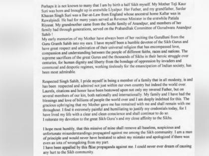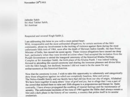 अमिताभ बच्चन यांनी २०११ साली अकाल तख्त साहिबच्या जत्थेदारांना हे पत्र पाठवले होते. यामध्ये त्यांनी त्यांच्यावर केले जाणारे आरोप फेटाळून लावले होते. त्यात त्यांनी लिहिले होते की, मी कधीही राजीव गांधी यांच्या हत्येनंतर उसळलेल्या दंगलीलाला पाठिंबा दिला नाही. मी कोणाच्याही विरोधात भडकाऊ भाषणे केली नाहीत. कदाचित तुम्हाला कोणीतरी चूकीची माहिती दिली किंवा तुमचा गैरसमज झाला आहे. हे पत्र मुंबईत राहणाऱ्या शिरोमणी गुरुद्वारा प्रबंधक समितीचे सदस्य गुरिंदरसिंग बावा यांच्यामार्फत पाठवण्यात आले होते.