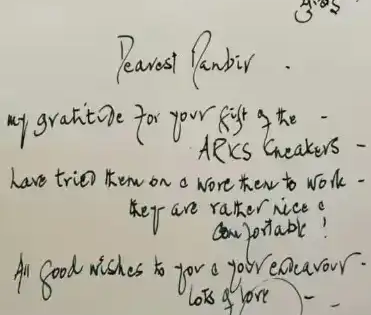 रणबीर कपूरनं गेल्या महिन्यात व्हॅलेंटाईन डेला एआरकेएस (ARKS) नावाचा ब्रँड लाँच केला आहे. यानंतर त्यानं अमिताभ बच्चन यांना एक स्नीकर्सची जोडी भेट म्हणून दिली. यावर आभार मानत अमिताभ यांनी रणबीरला पत्र लिहून शुभेच्छा दिल्यात. खास म्हणजे त्यांनी हे पत्र स्वत:च्या अक्षरात लिहून पाठवलं आहे.