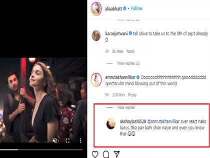 होय, आलियाने ट्रेलरची पोस्ट शेअर करताच अमृताने त्यावर कमेंट करत, ‘ब्रह्मास्त्र’च्या ट्रेलरचं भरभरून कौतुक केलं. ‘Ooooooohhhhhhhhhhh goooddddddd spectacular mind blowing out of this world’ असं कमेंट करताना अमृताने लिहिलं. झालं...!! एका युजरने तिथेच अमृताला ट्रोल केलं.