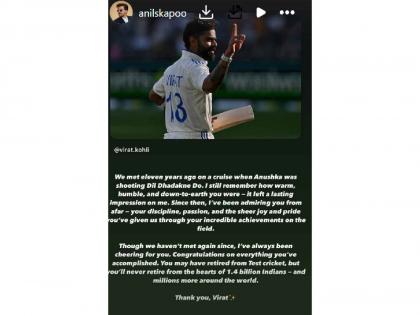 विराट कोहलीने कसोटी क्रिकेटमधून निवृत्ती जाहीर केल्यानंतर अनेकांनी त्याच्यासाठी पोस्ट लिहिली. अनिल कपूरनेही पोस्ट शेअर केली होती. यात ते लिहितात, "आम्ही ११ वर्षांपूर्वी क्रूझवर भेटलो होतो. दिल धडकने दो चं शूट सुरु होतं. अनुष्काही आमच्यासोबत होती. मला आठवतंय विराट तू तेव्हाही किती नम्र आणि जमिनीशी जोडलेला होतास. माझ्यावर तर तू मोठा प्रभाव पाडलास. तेव्हापासून मी दूरुनच तुझी स्तुती करतो. तुझं अनुशासन, पॅशन...मैदानावर तू मिळवलेलं यश पाहून ते आम्हाला खूप आनंद आणि गर्व वाटतो. आपण त्या दिवसानंतर भेटलो नाही पण मी नेहमीच तुझ्यासाठी खूश होत राहिलो. तू जे मिळवलं आहेस त्यासाठी शुभेच्छा. कसोटीतून तू जरी निवृत्त झाला असला तरील १४० कोटी भारतीयांच्या मनातून तू कधीच निवृत्त होणार नाहीस. थँक यू विराट."