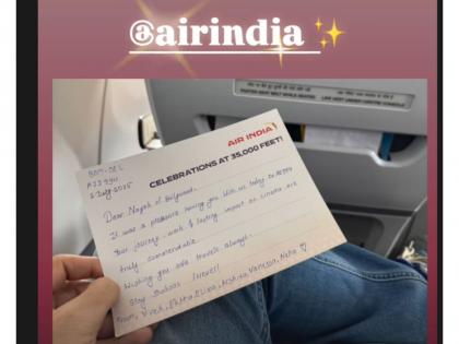 अनिल कपूरने इन्स्टाग्राम स्टोरीवर एअर इंडिया प्रवासाचा सुखद अनुभव शेअर केला आहे. यावेळी अनिलने केबिन क्रूसोबत फोटो शेअर केला आहे. अनिलने सर्वांसोबत एक सेल्फी काढला आहे. याशिवाय एका फोटोमध्ये अनिलने हातामध्ये एक कागदाची नोट पकडली आहे. ही नोट त्याला एअर इंडियाच्या स्फाटने दिली आहे. "आमचे प्रिय बॉलिवूड नायक, आज तुम्हाला आमच्या फ्लाईटमध्ये बघून आम्हाला खूप आनंद झाला. तुमचा आजवरचा प्रवास, काम आणि सिनेमाबद्दल असलेलं तुमचं योगदान खूप कौतुकास्पद आहे. आम्ही तुम्हाला सुरक्षित यात्रेच्या शुभेच्छा देतो. असेच झक्कास राहा.", असा संदेश त्या चिठ्ठीवर असलेला दिसतो.