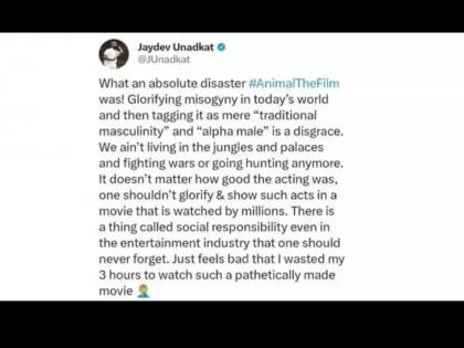 'ॲनिमल' सिनेमा पाहिल्यानंतर उनाडकटने एक्सवर ट्वीट करत या चित्रपटाबद्दल नाराजी व्यक्त करत टीका केली होती. मात्र काही वेळाने त्याने हे ट्वीट डिलीट केलं. जयदेव उनाडकटने ट्वीटमध्ये 'ॲनिमल' सिनेमाबाबत त्याचं मत मांडलं होतं. "'ॲनिमल'सिनेमा म्हणजे एक आपत्ती आहे. महिलांना कमी लेखण्याच्या वृत्तीचं समर्थन करत त्याला पारंपरिक पौरुषत्व आणि प्रभावशाली पुरुष असा टॅग देणं लज्जास्पद आहे. आपण जंगल किंवा पॅलेसमध्ये राहून युद्ध करत नाही आहोत. किती चांगला अभिनय केला हे महत्त्वाचं नाही. अशाप्रकारच्या गोष्टींना चित्रपटातून महत्त्व दिलं गेलं नाही पाहिजे. कारण, मिलियन प्रेक्षक ते पाहतात. मनोरंजन क्षेत्रात असूनही समाजाप्रती काही कर्तव्य आहेत, त्याचा विसर पडता काम नये. हा चित्रपट पाहण्यात मी ३ तास वाया घालवले, यासाठी मला वाईट वाटतंय," असं उनाडकटने म्हटलं होतं. पण, काही वेळाने त्याने हे ट्वीट डिलीट केलं.