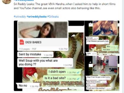 श्री रेड्डीने लीक केलेले हे स्क्रिन शॉट्स सध्या वेगाने व्हायरल होत आहे. अर्थात या चॅटवरून हे सिद्ध होत नाही की, कुणी तिच्यावर शरीर संबंध बनवण्यासाठी दबाव टाकला. यात वीवा हर्ष याचेही नाव आहे.