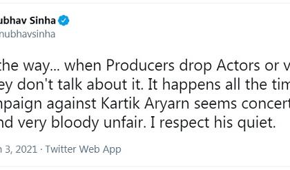 अनुभव सिन्हाच्या या ट्वीटनंतर अनेक नेटकरी कार्तिकची बाजू घेताना दिसले. इतकेच नाही तर सोशल मीडियावर पुन्हा एकदा इनसाईडर विरूद्ध आऊटसाईडर असा वाद रंगला आहे. अनेकांनी कार्तिकवर अन्याय होत असून यासाठी करण जोहर जबाबदार असल्याचा थेट आरोप केला आहे. अनेकांनी कार्तिकने याविरोधात आवाज उठवावा, अशी भावनाही व्यक्त केली आहे. कार्तिक बोलला नाही पण अनुभव सिन्हा यांनी बोलण्याची हिंमत दाखवली, यासाठी अनेक युजर्सनी त्यांचे कौतुकही केले आहे.
